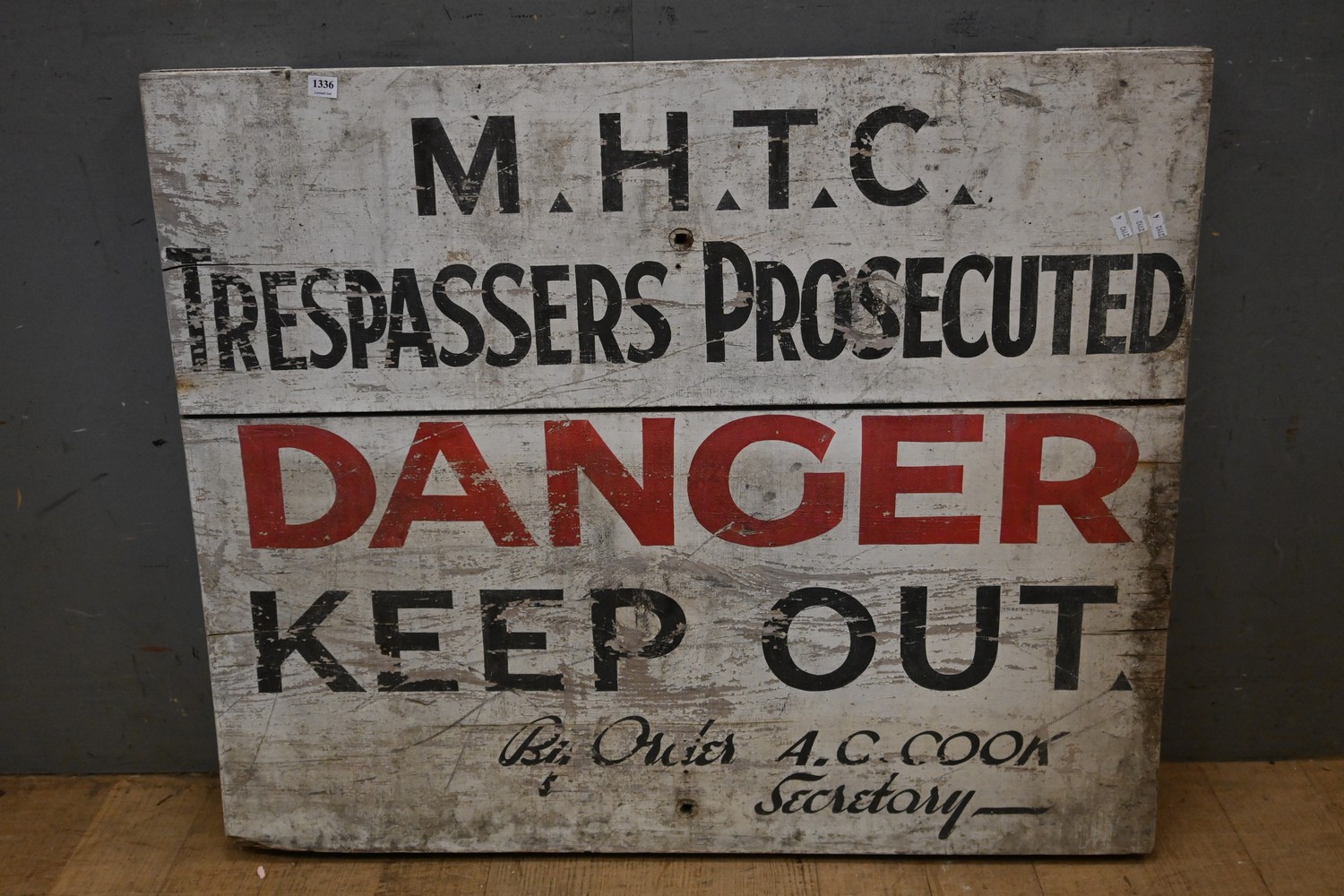 AN INDUSTRIAL DANGER SIGN (A/F) ( 77H X 91W CM) (LEONARD JOEL DELIVERY SIZE: LARGE)