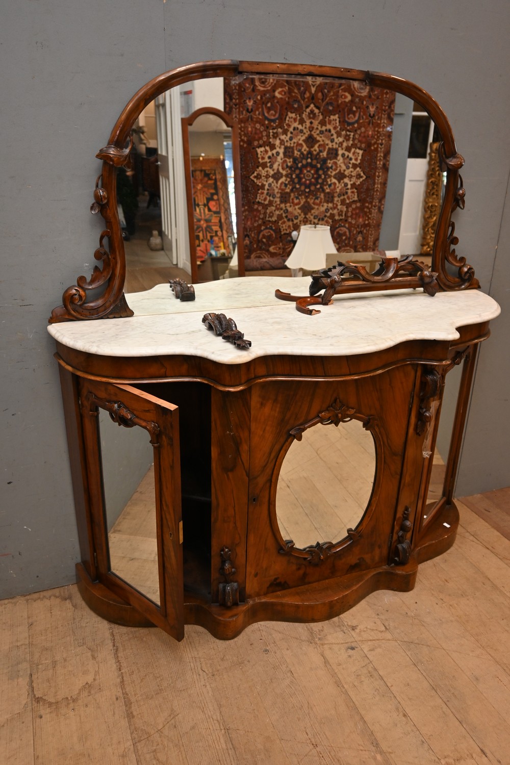 A VICTORIAN MIRROR BACK CREDENZA WITH MARBLE TOP (A/F) (147H X 135W X 43D CM) (PLEASE NOTE THIS HEAVY ITEM MUST BE REMOVED BY CARRIERS AT THE CUSTOMER'S EXPENSE. LEONARD JOEL STAFF CANNOT ASSIST CARRYING THIS ITEM) (X-LARGE ITEM)