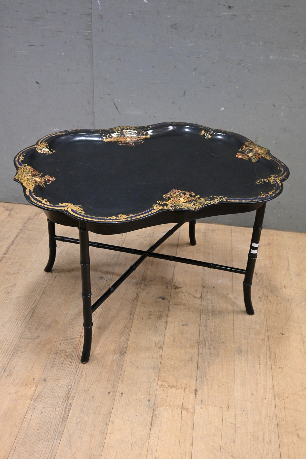 A VICTORIAN PAPIER MACHE TABLE WITH LIFT OFF TOP (A/F) (49H X 79W X 61D CM) (LEONARD JOEL DELIVERY SIZE: MEDIUM)