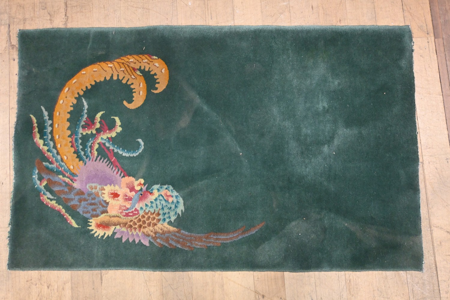 A CHINESE RUG (A/F) (147 X 90 CM) (LEONARD JOEL DELIVERY SIZE: MEDIUM)