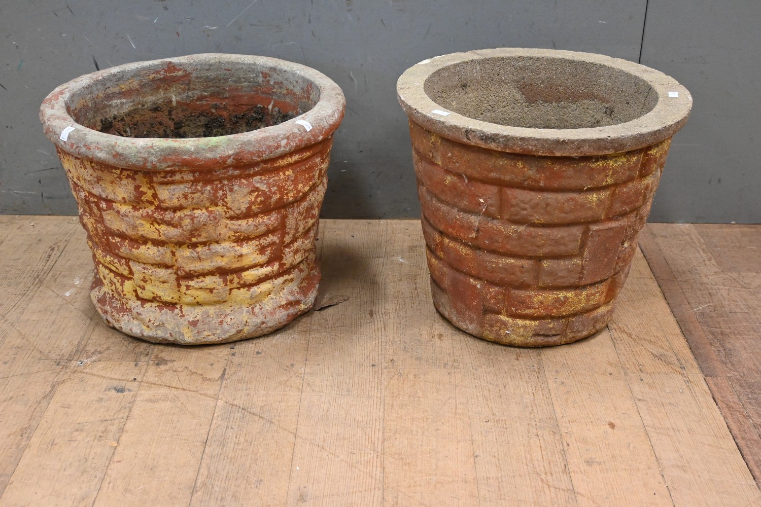 TWO RUSTIC CONCRETE POTS (A/F) (34H X 40D CM) (LEONARD JOEL DELIVERY SIZE: LARGE)