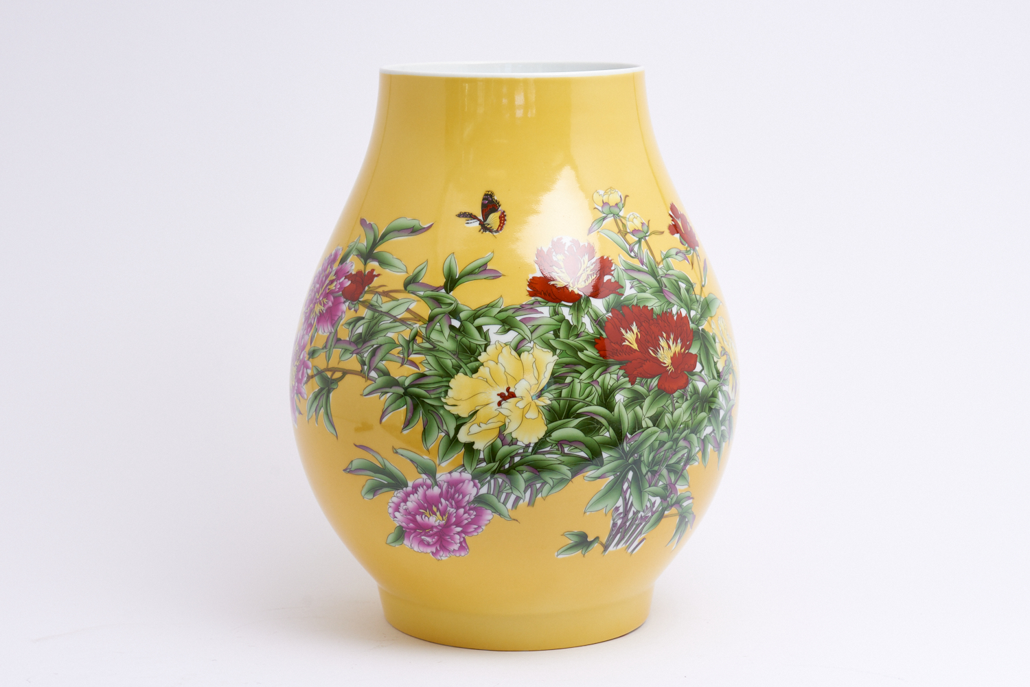 A CHINESE FLORAL DECORATED IMPERIAL YELLOW VASE H.36.5CM, LEONARD JOEL LOCAL DELIVERY: MEDIUM