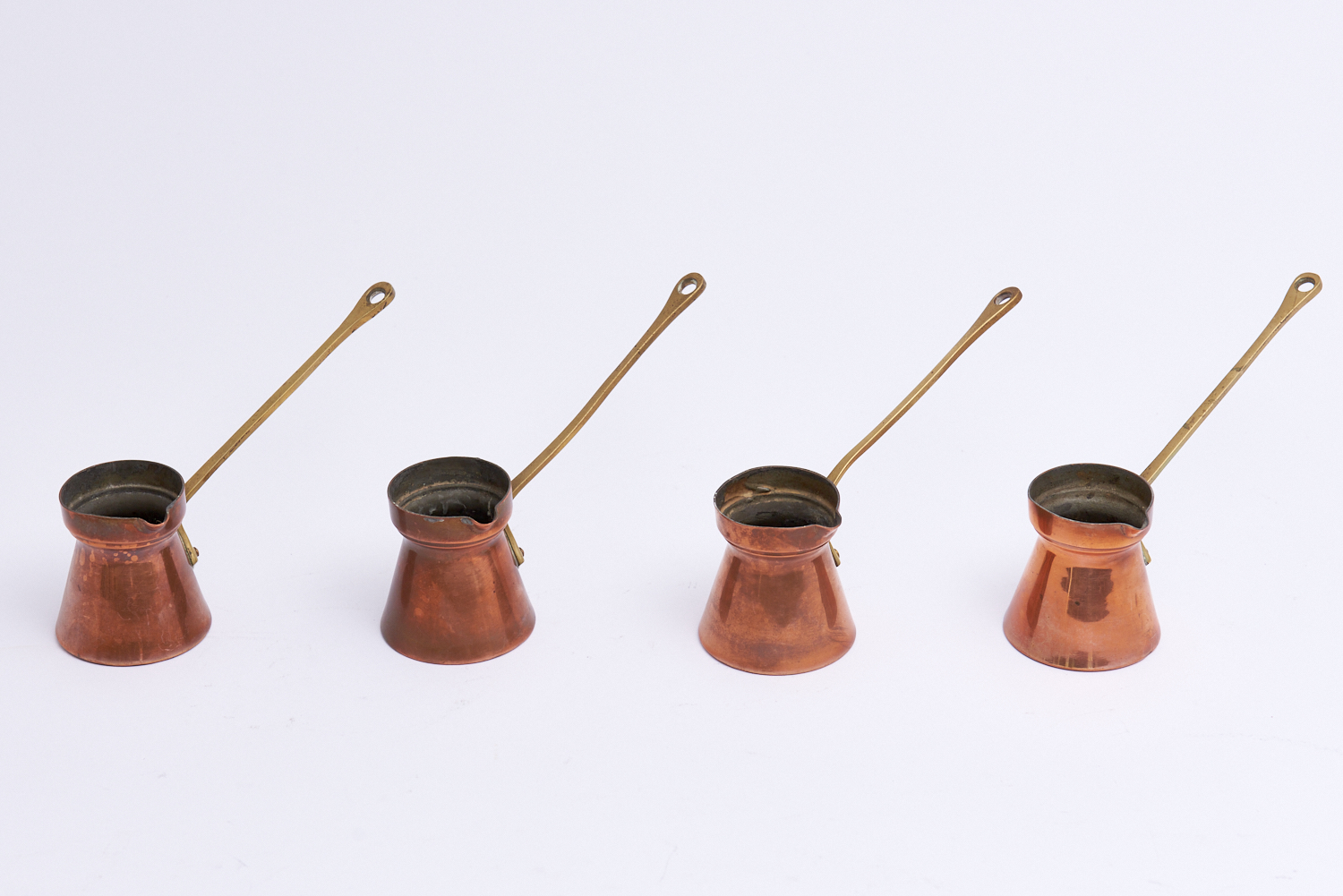 GROUP OF SMALL FRENCH COPPER JUGS L.16.5CM, LEONARD JOEL LOCAL DELIVERY: SMALL