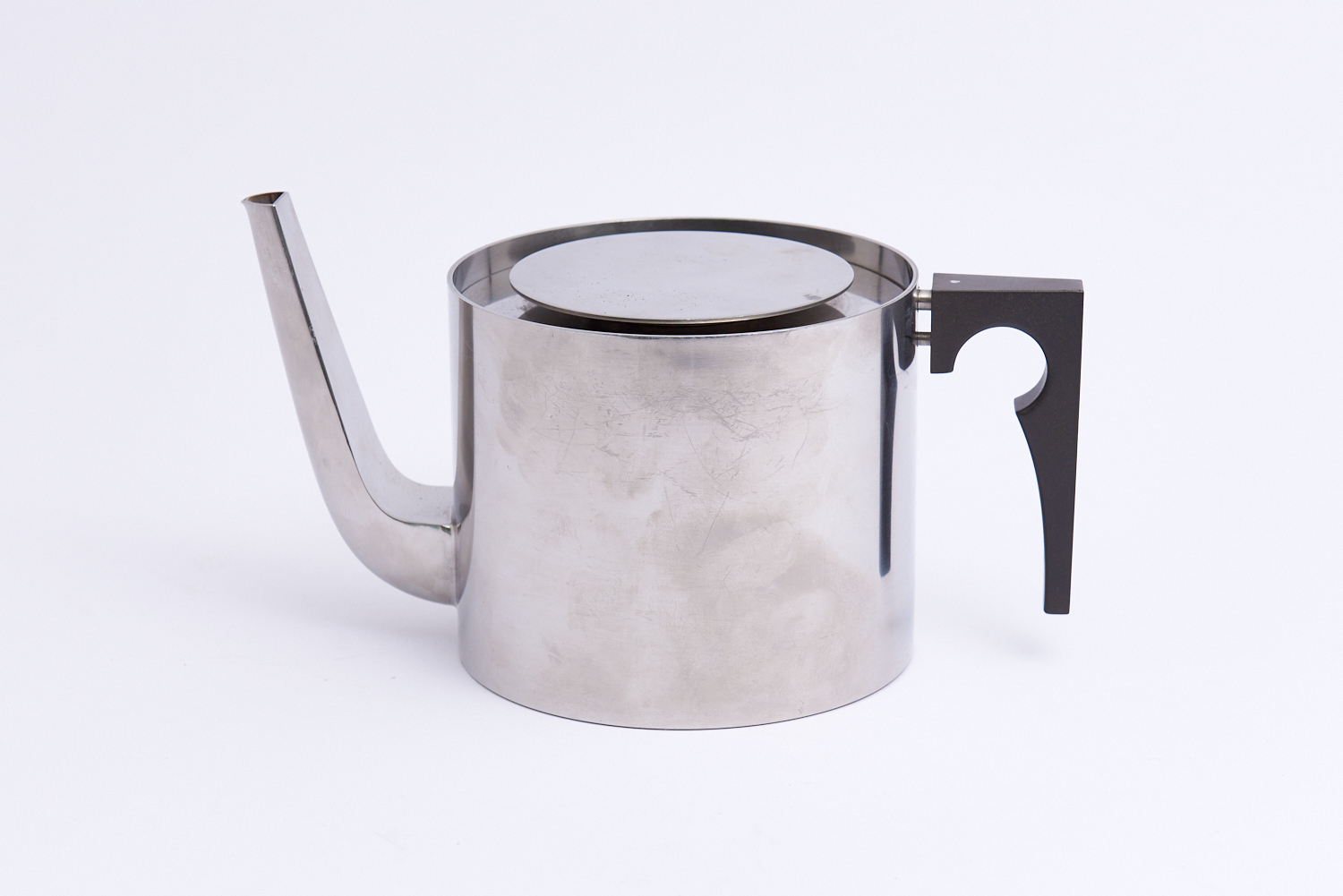A STAINLESS STEEL TEAPOT BY ARNE JACOBSEN FOR STELTON H.13CM, LEONARD JOEL LOCAL DELIVERY: SMALL