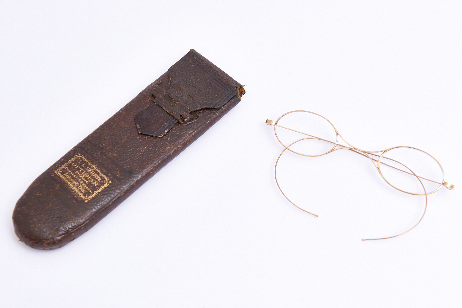 A PAIR OF ANTIQUE GOLD FRAMED GLASSES IN CASE W.11CM, LEONARD JOEL LOCAL DELIVERY: SMALL