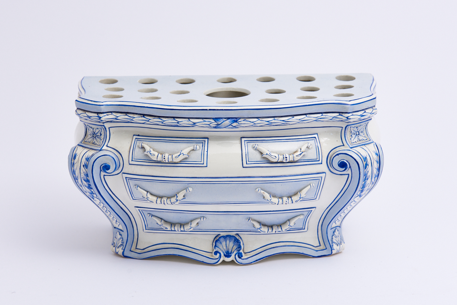 FRENCH PORCELAIN ROSE VASE IN THE FORM OF CHEST OF DRAWERS H.13CM X W.24CM, LEONARD JOEL LOCAL DELIVERY: SMALL