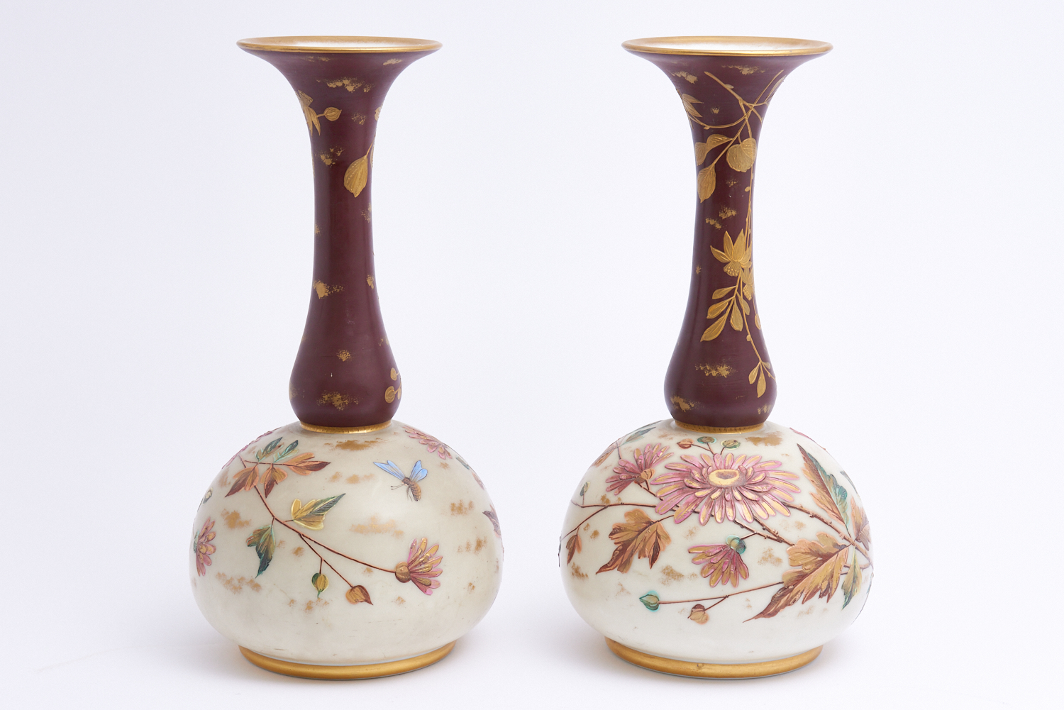 A PAIR OF HANDPAINTED SATIN GLASS VASES H.35CM, LEONARD JOEL LOCAL DELIVERY: MEDIUM