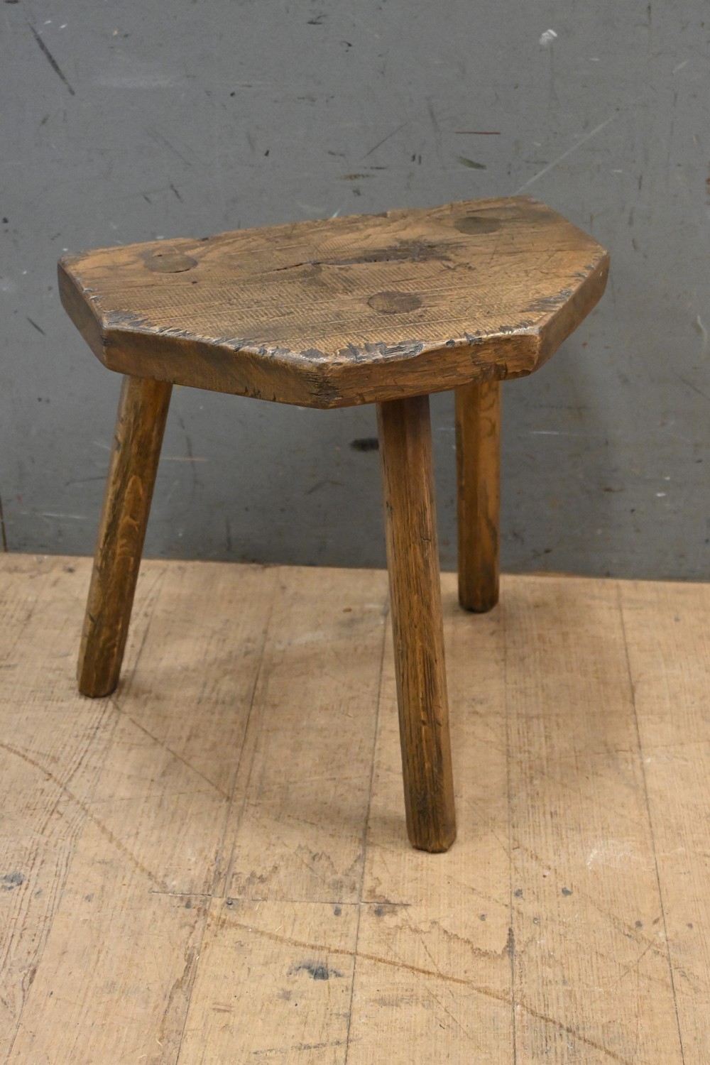 AN OAK FRENCH STYKE MILKING STOOL (40H X 38W X 24D CM) (LEONARD JOEL DELIVERY SIZE: MEDIUM)