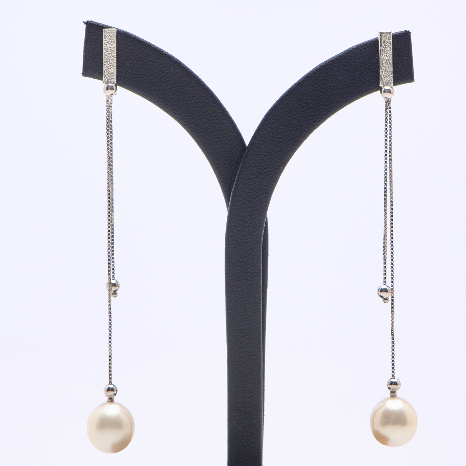 A PAIR OF PEARL DROP EARRINGS IN 18CT WHITE GOLD, THE PEARL DIAMETER 10MM, TO POST AND BUTTERFLY FITTINGS, LENGTH 90MM, WEIGHT 6.47GMS
