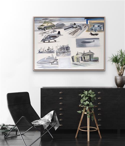 Work is in overall good condition. There is wear to the top right edge of the canvas, resulting in paint loss. Well framed, overall size 92 x 122.5cm.