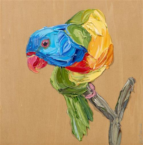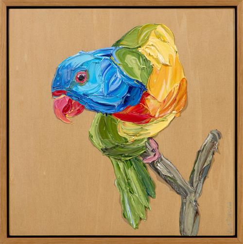 signed, titled and dated verso: Precision Balance / Rainbow Lorikeet / 2017 / Jodie Wells