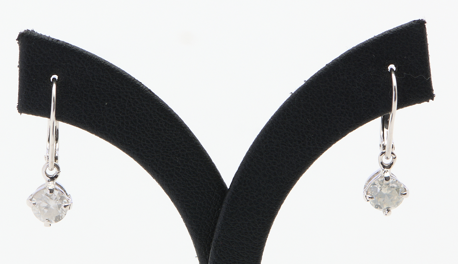 A PAIR OF DIAMOND EARRINGS IN 18CT WHITE GOLD, TO EUROPEAN FITTINGS, THE DIAMONDS TOTALLING APPROXIMATELY 1.30CT, APPROXIMATE WEIGHT 2.0GMS