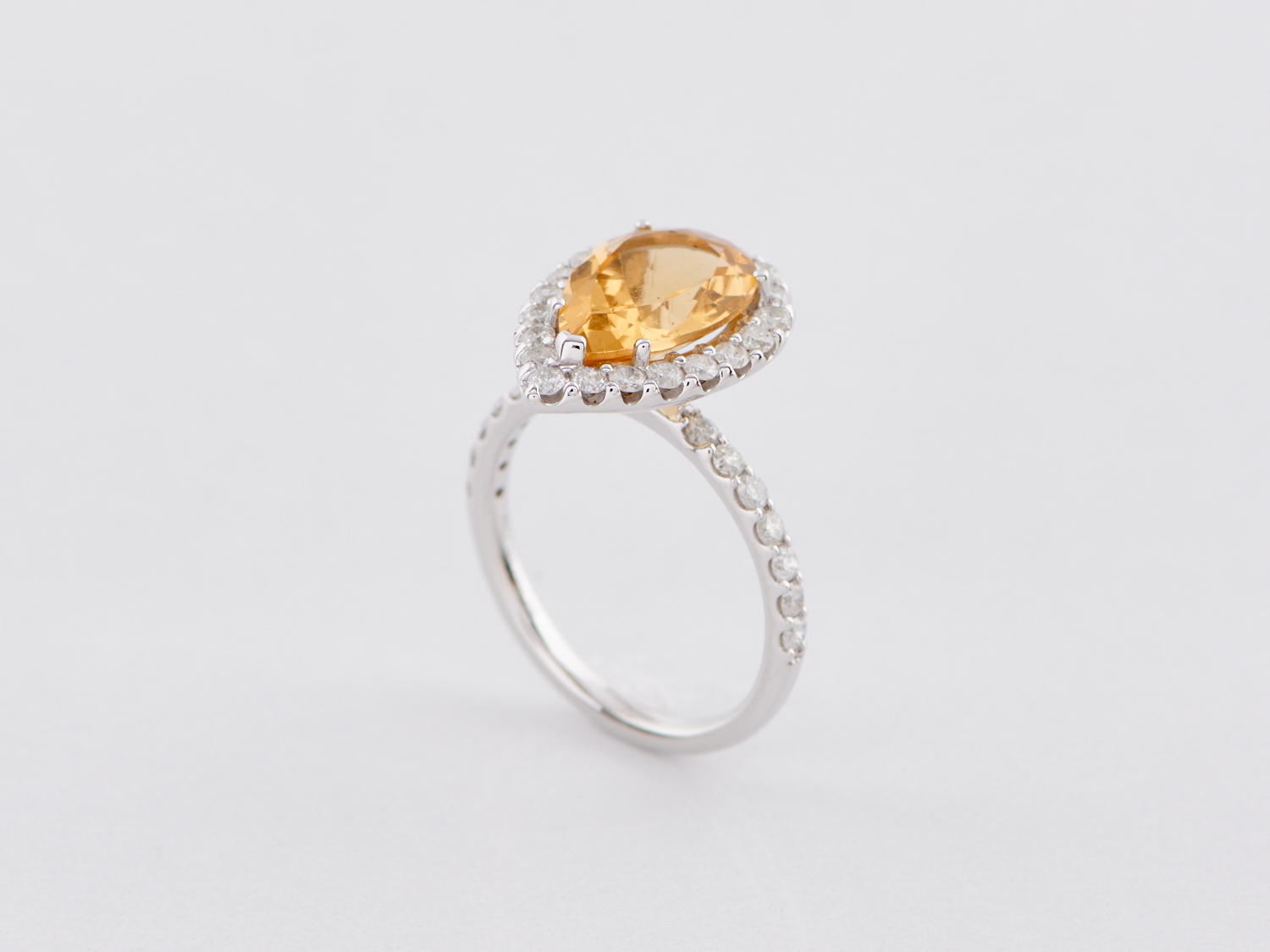 A HELIODOR AND DIAMOND RING IN 14CT WHITE GOLD, RING SIZE L, THE HELIODOR TOTALLING 2.55CTS, THE DIAMONDS TOTALLING 0.70CTS G-H/SI2-I2