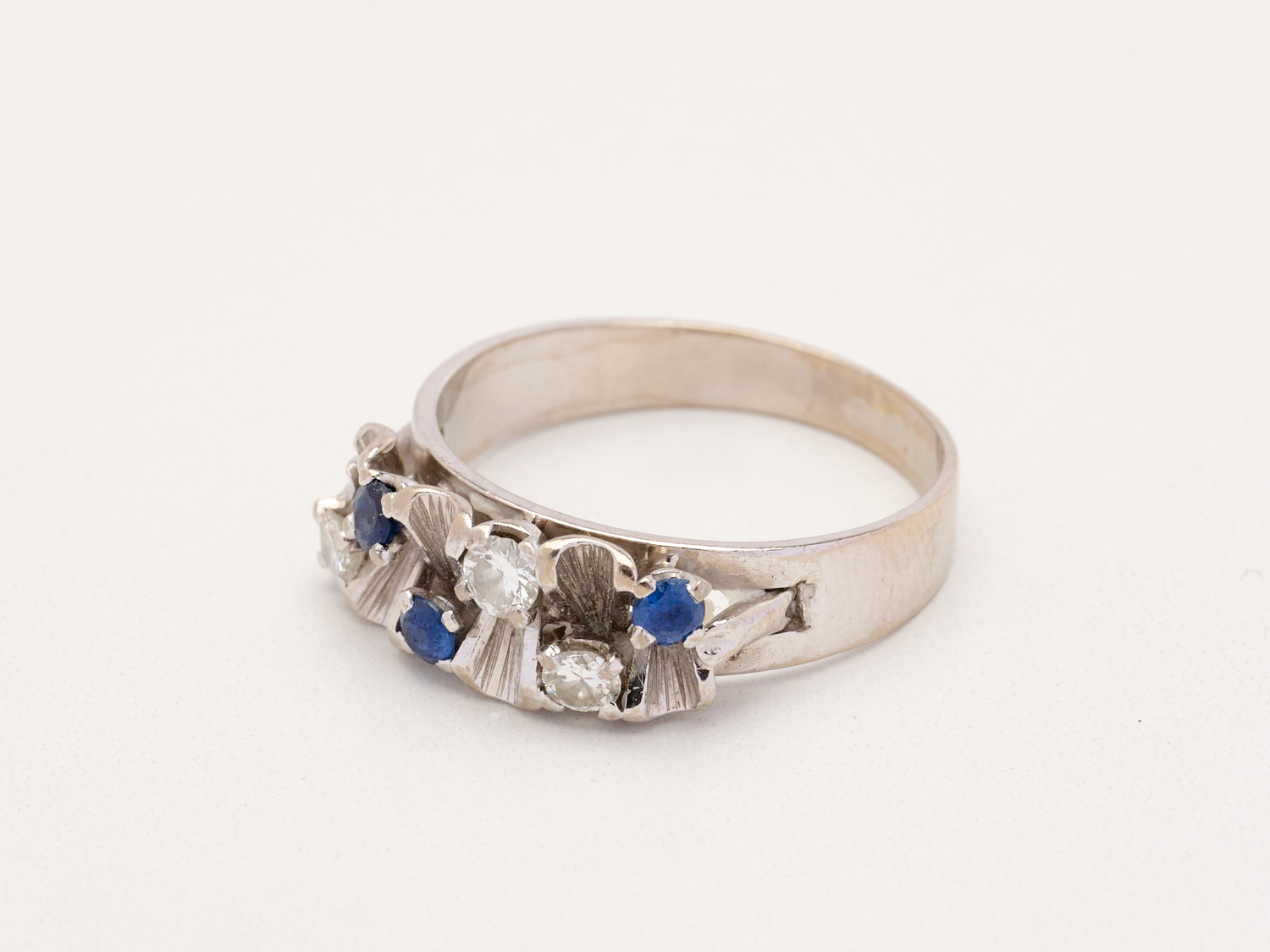 A SAPPHIRE AND DIAMOND RING IN 18CT WHITE GOLD, RING SIZE T, 6.2 GRAMS