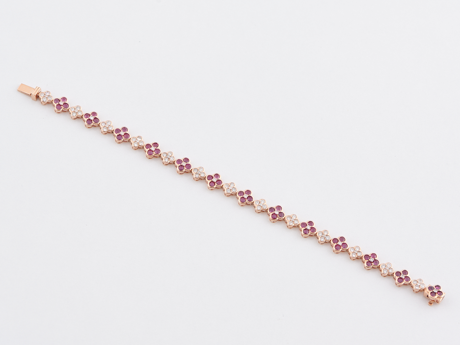 A RUBY AND DIAMOND BRACELET IN 14CT ROSE GOLD, RUBIES TOTALLING 3.70CTS, THE DIAMONDS TOTALLING 1.80CTS, LENGTH 175MM