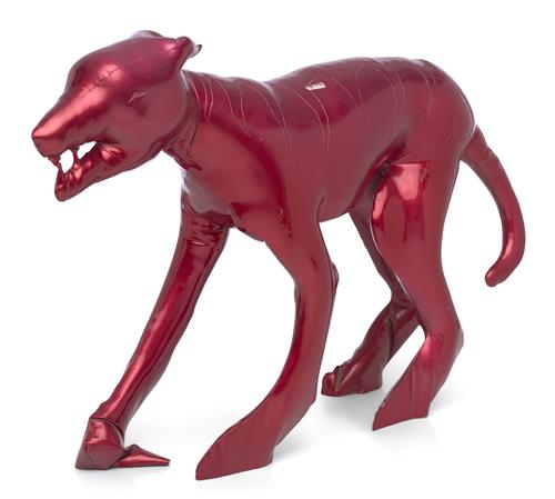 Transmutation describes concepts of evolutionary change as well as the alteration of base metals into precious metals. Caroline Rothwell blends these two meanings together in her art. Rothwell's work revolves around our relationship with the natural world. Her 'Tygers' are metamorphic beings - creatures depicted in man-made materials complete with 'oh so sexy' candy red auto-lacquer, as she calls it.