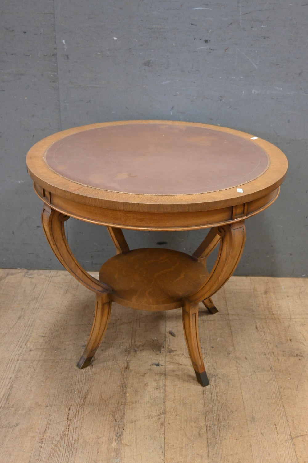 A MID CENTURY EMPIRE-STYLE OAK ROUND SIDE TABLE (A/F) (61H X 69D CM) (LEONARD JOEL DELIVERY SIZE: LARGE)