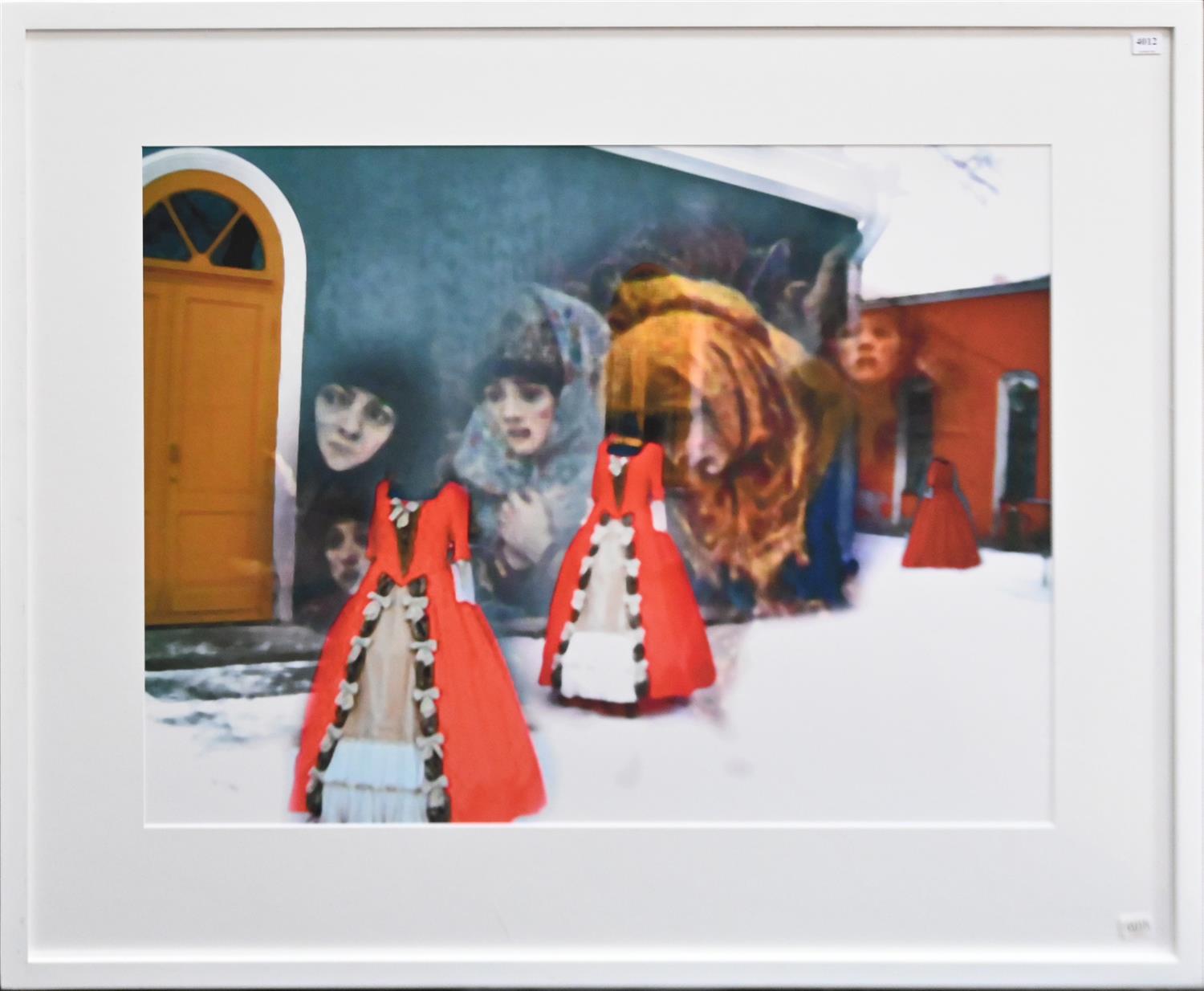Work is in overall good condition but there is a significant scratch to the perspex covering. Framed 86 x 105cm.