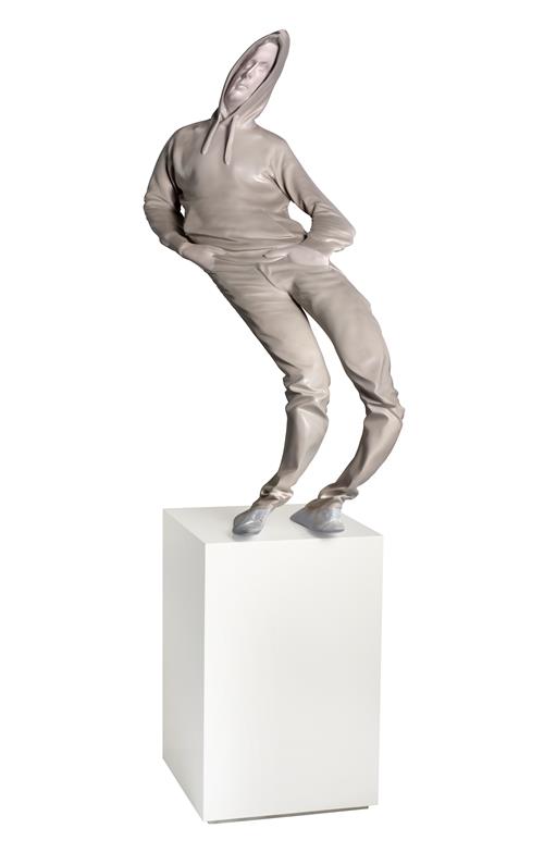 "Whatever examines the near future in a world that is digitised and mapped. It is a sculpture of a disenfranchised youth living in a cyber world, his existence depending on technology. The work uses ‘organic data', taken from life and digitised by a scanning process. I manipulate the data with digital tools then prepare it for 3D thermal plastic printing. The many 3D pieces are assembled and hand finished." (Artist's statement, 2012)