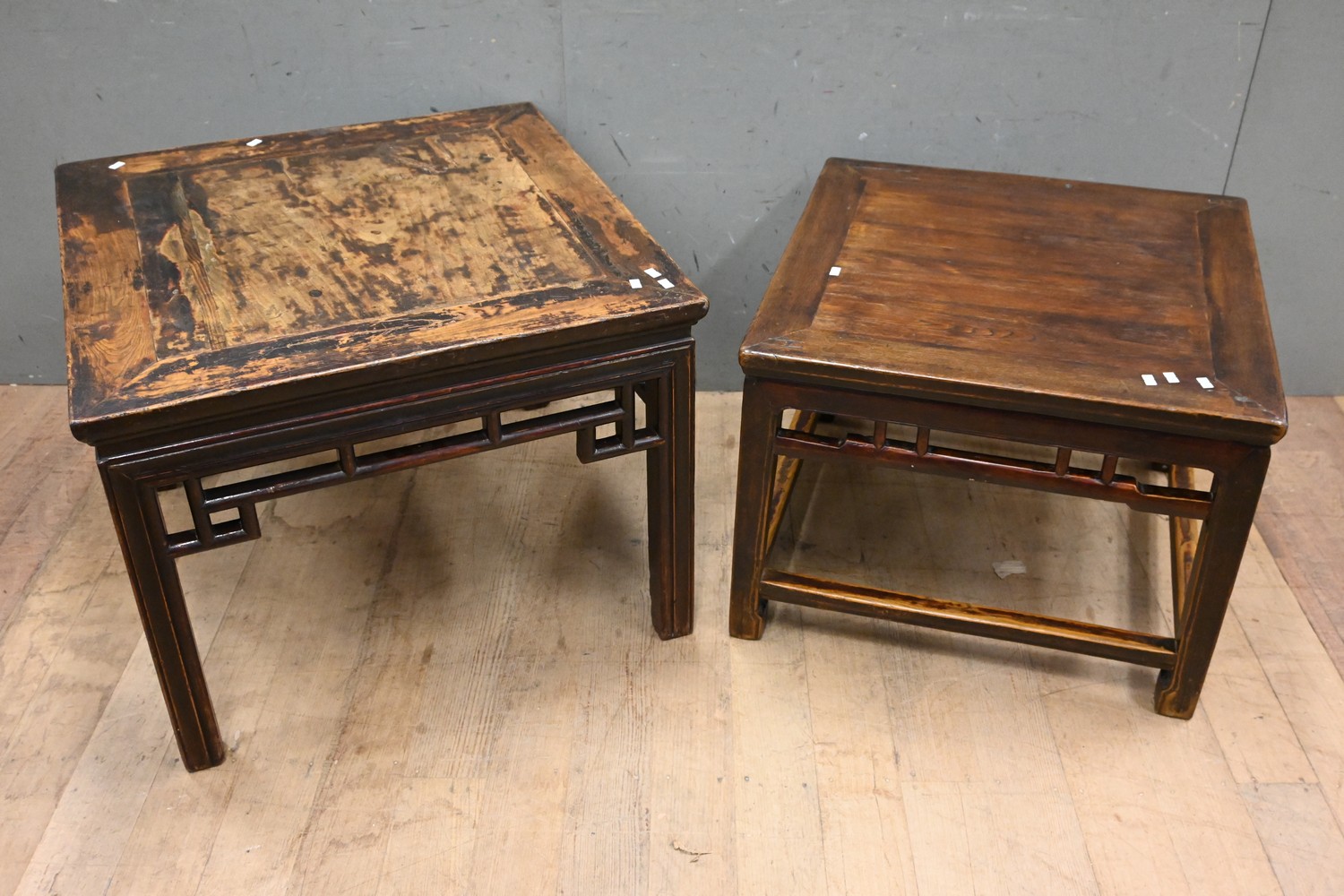 TWO CHINESE LOW TABLES (57H X 73W X 73D CM) (LEONARD JOEL DELIVERY SIZE: LARGE)