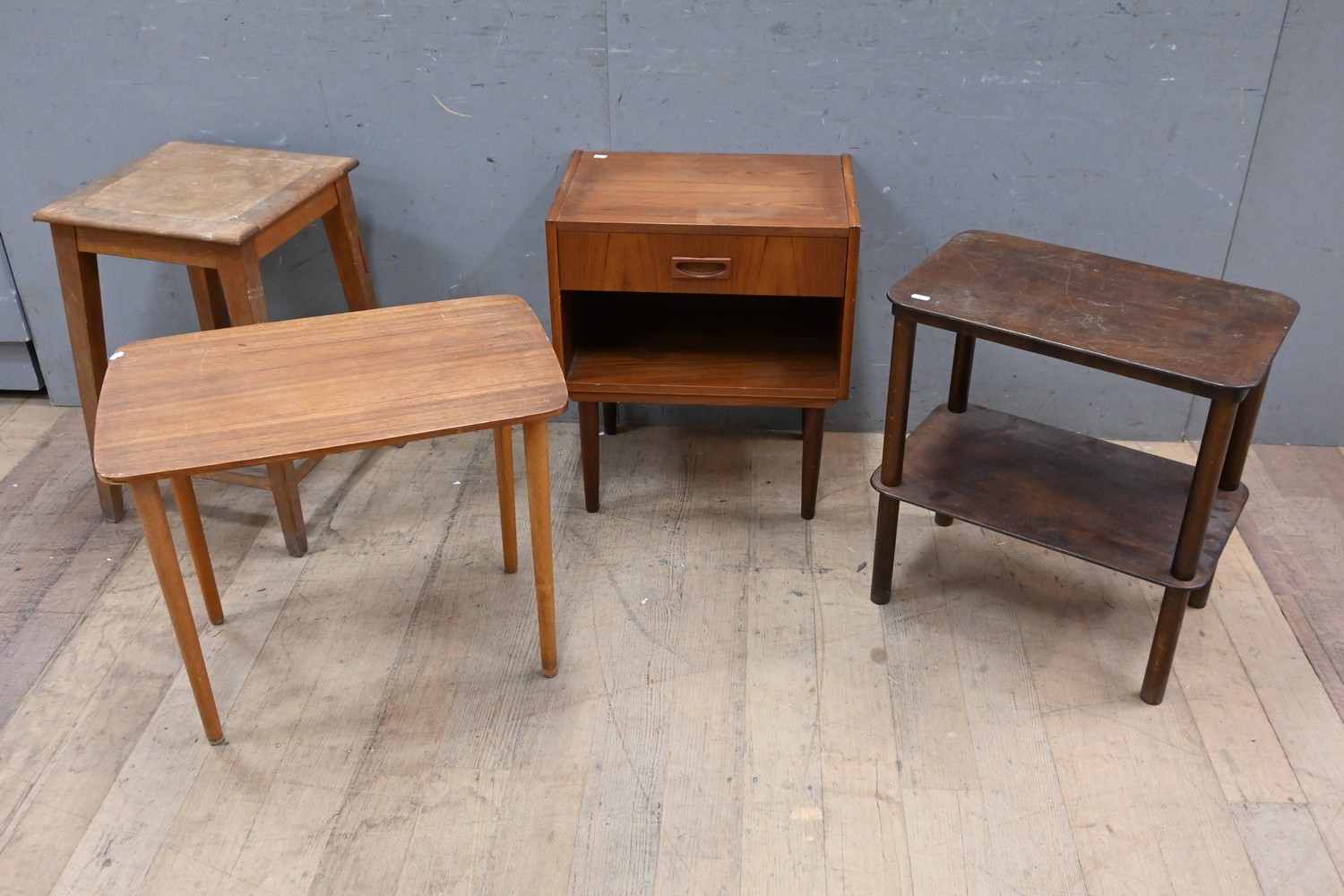 A DANISH BEDSIDE TABLE AND THREE DANISH SIDE TABLES (A/F) (58H X 37W X 37D CM) (LEONARD JOEL DELIVERY SIZE: LARGE)