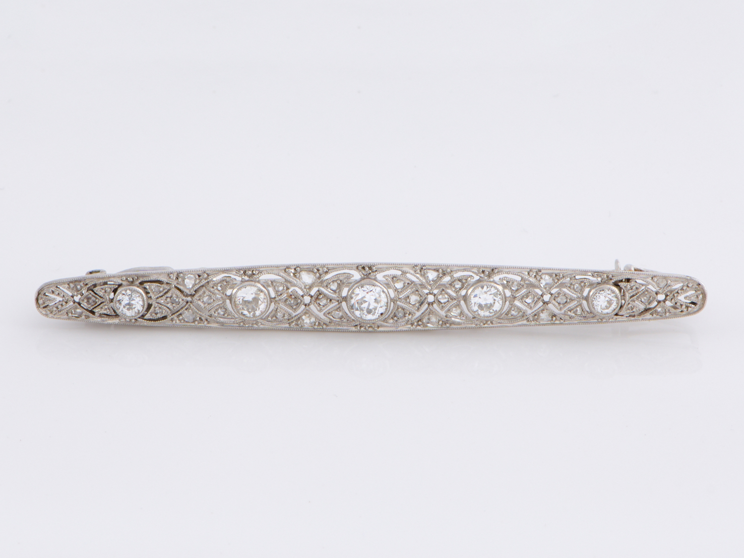 AN ART DECO DIAMOND BAR BROOCH IN PALLADIUM, 6.20GMS, 70MM