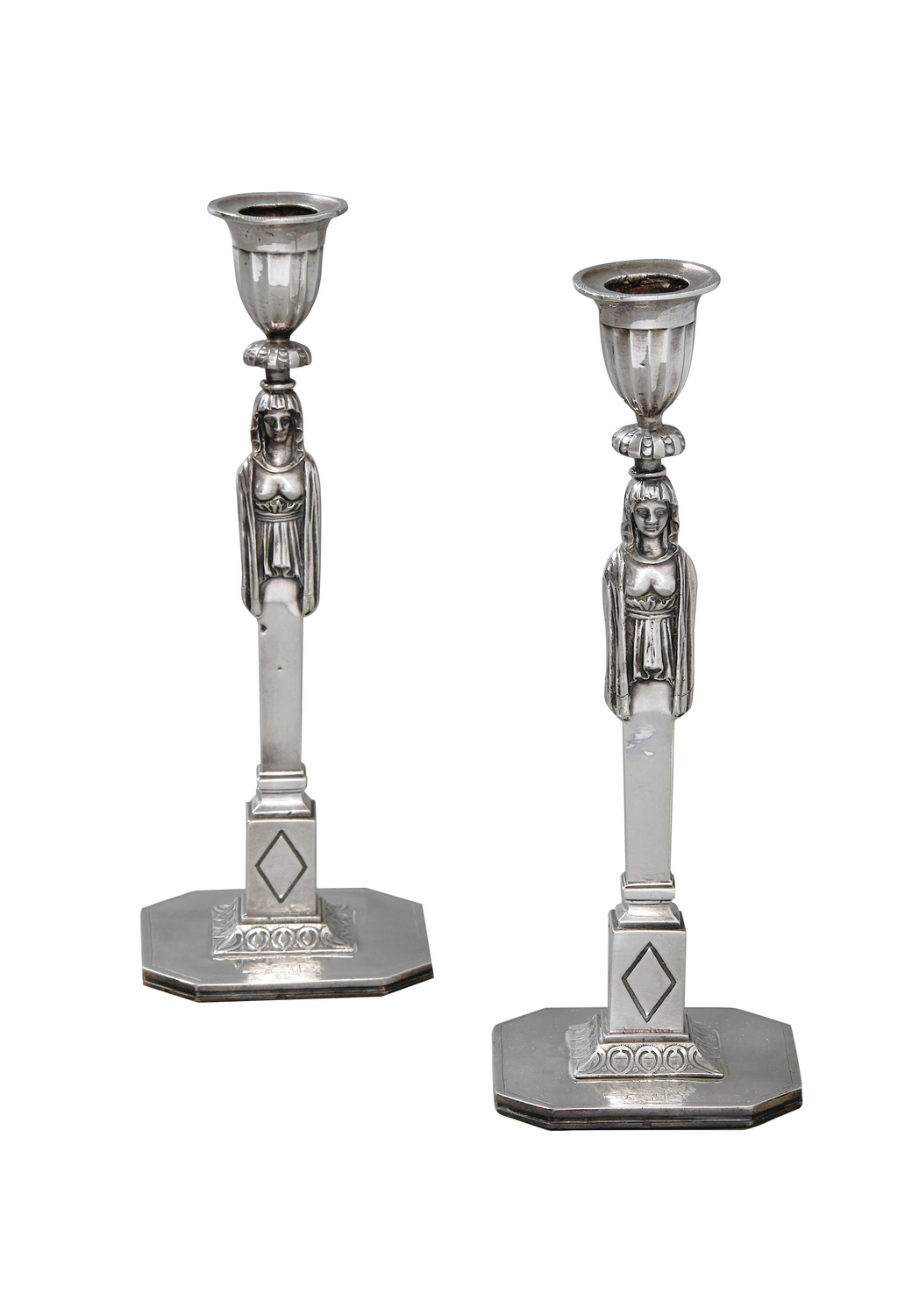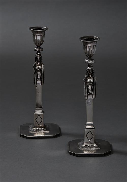 A PAIR OF AUSTRIAN SILVER CANDLESTICKS