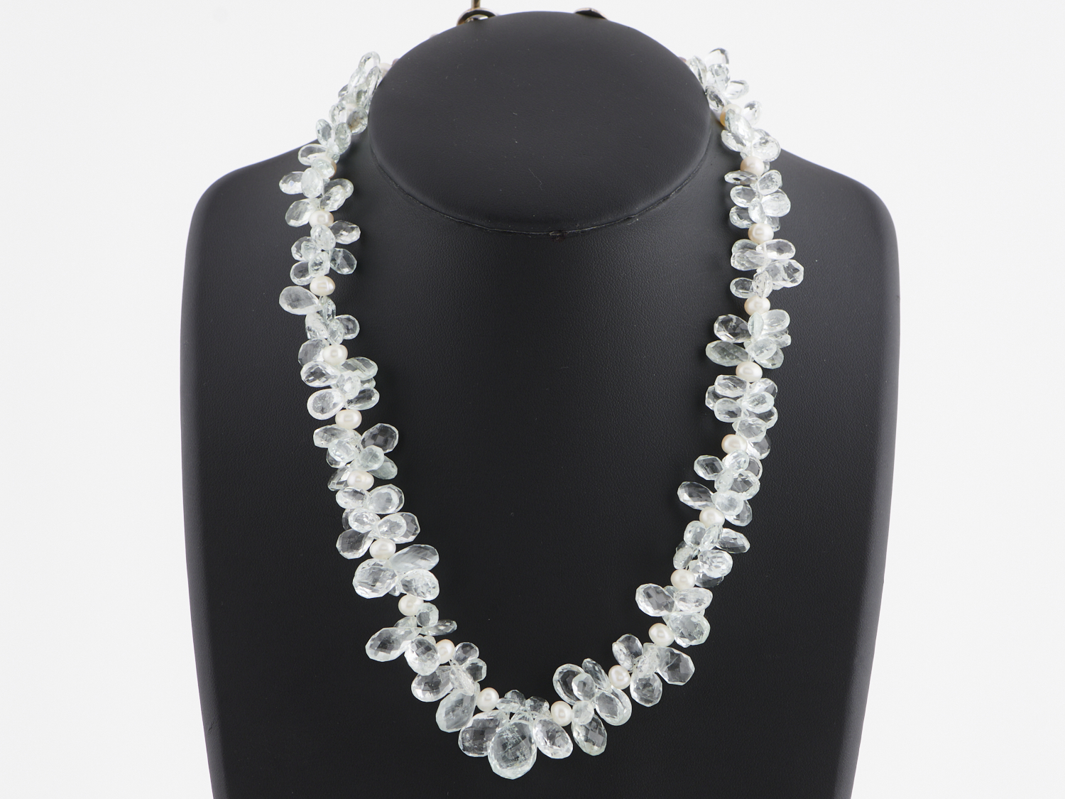 A BRIOLETTE AQUAMARINE AND FRESHWATER PEARL NECKLACE, TOTAL LENGTH APPROXIMATELY 440MM