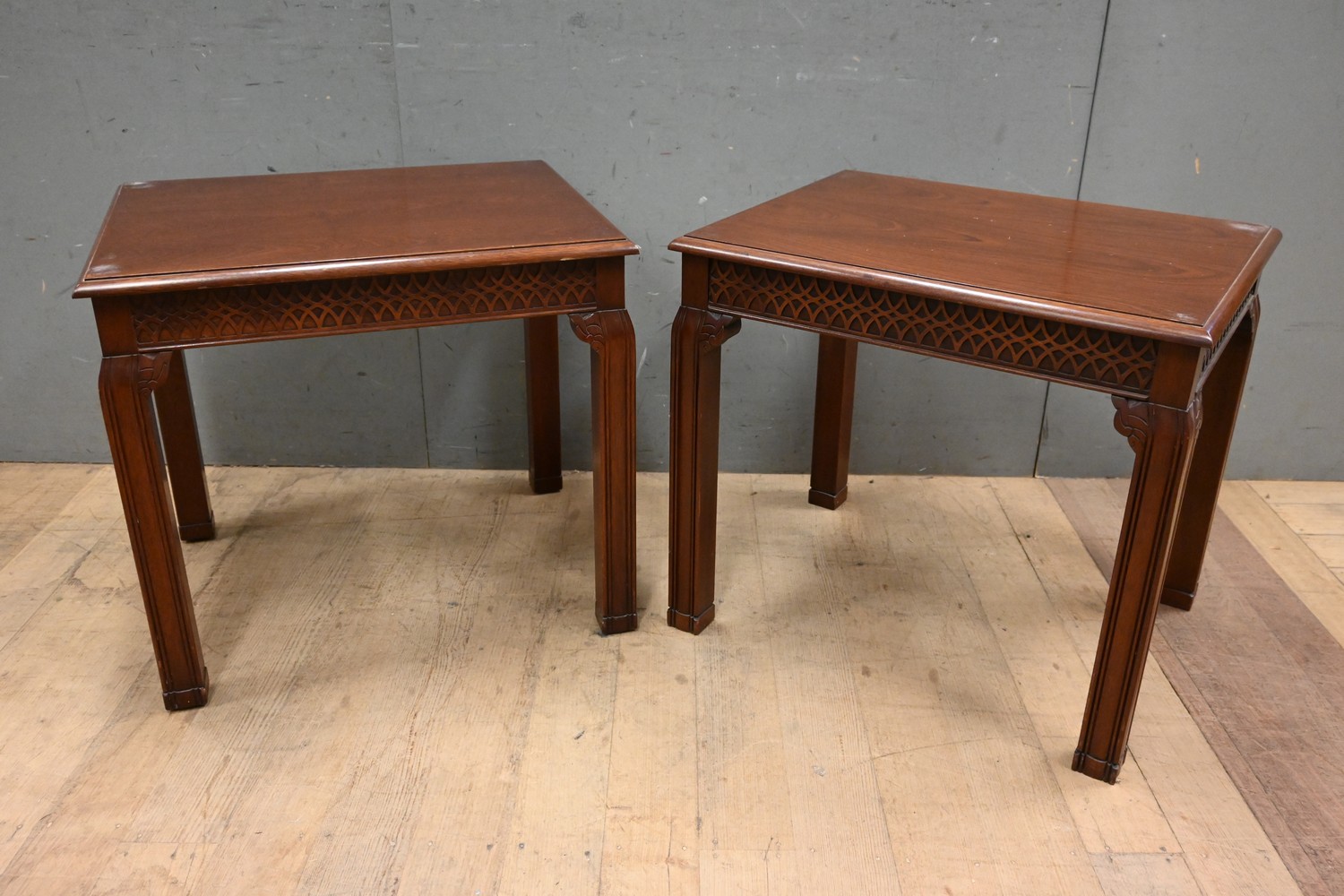 A PAIR OF HARDWOOD LOW SIDE TABLES (58H X 64W X 51D CM) (LEONARD JOEL DELIVERY SIZE: LARGE)