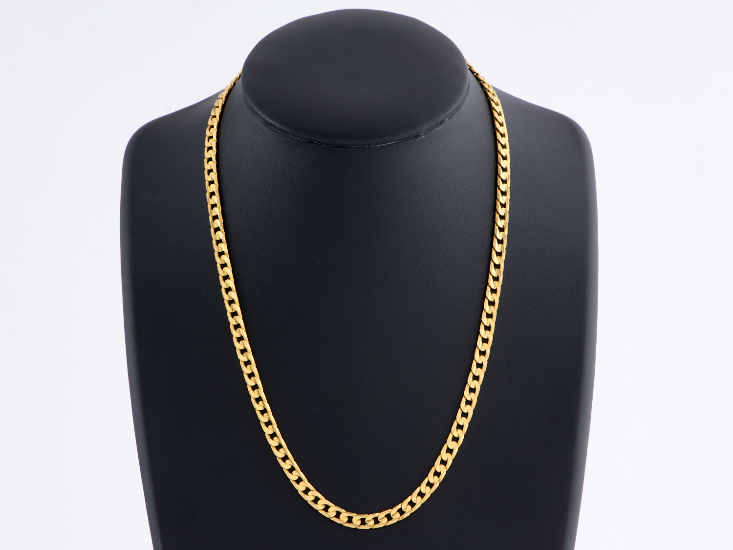 AN ITALIAN FLAT CURB LINK CHAIN IN 9CT GOLD, TOTAL LENGTH APPROXIMATLEY 495MM, 23.41GMS
