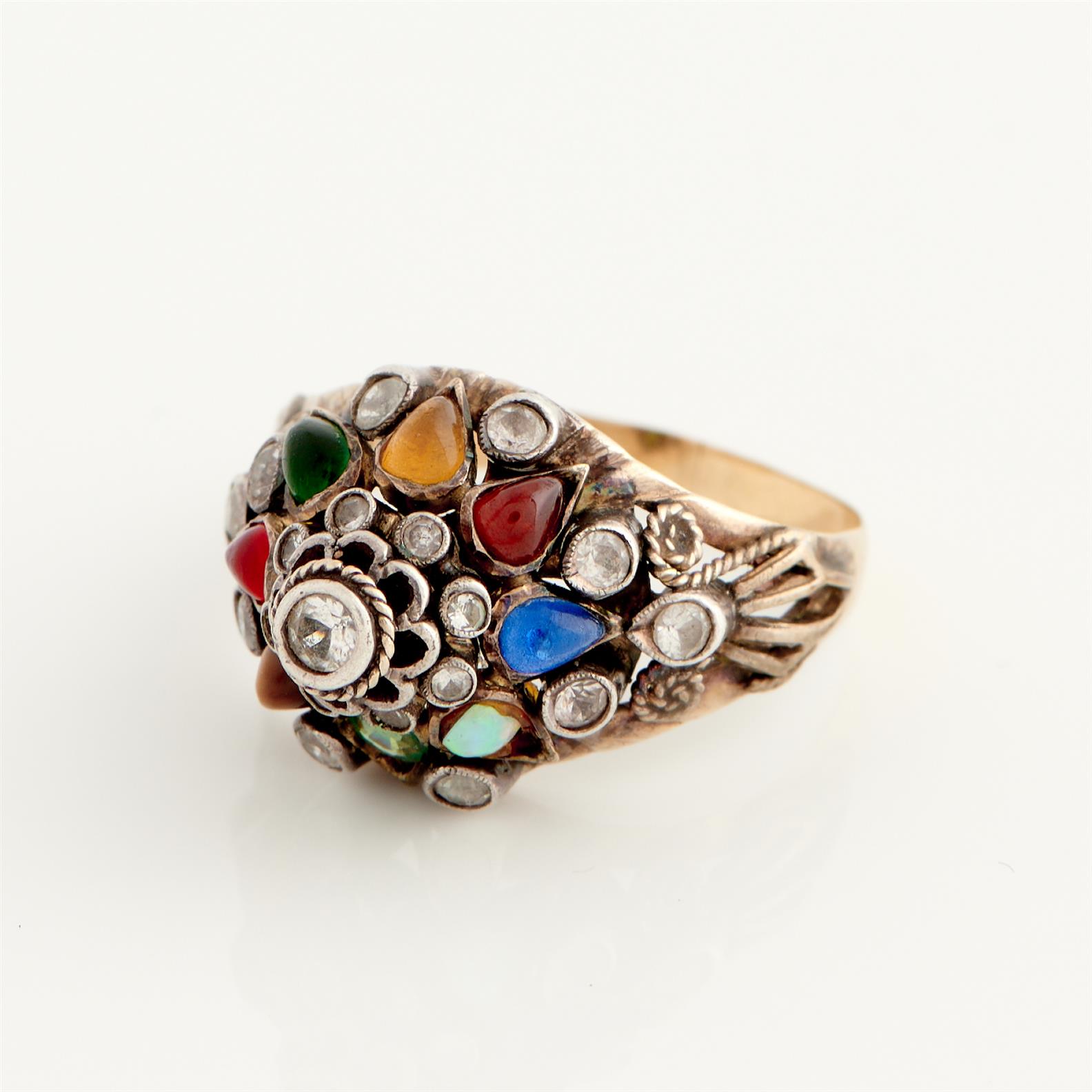 A MULTI GEM-SET RING RING IN 9CT GOLD, RING SIZE L, 3.6GMS