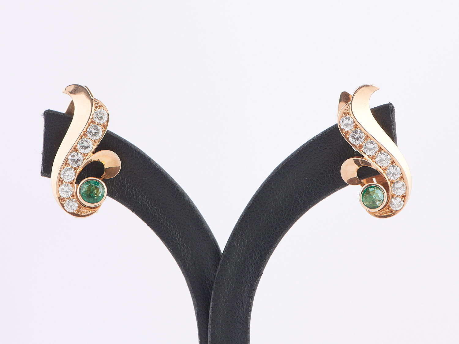 A PAIR OF DIAMOND AND EMERALD EARRINGS IN 14CT GOLD, TO CLIP FITTINGS, 25 X 10MM, 6.0GMS