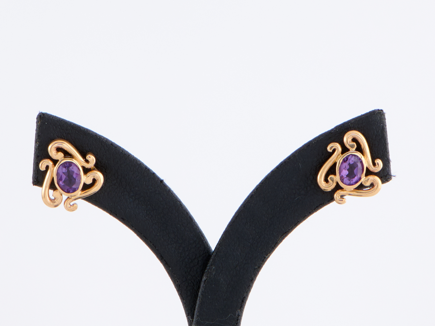 A PAIR OF AMETHYST SET EARRINGS IN 9CT GOLD, TO POST AND BUTTERFLY FITTINGS, DIAMETER 10MM, 2.8GMS
