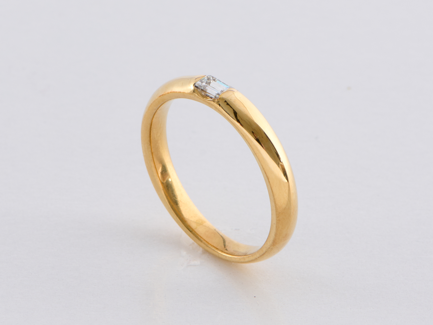 A GENTLEMENS BAGUETTE SET DIAMOND RING IN 18CT GOLD, RING SIZE V, 6.67GMS