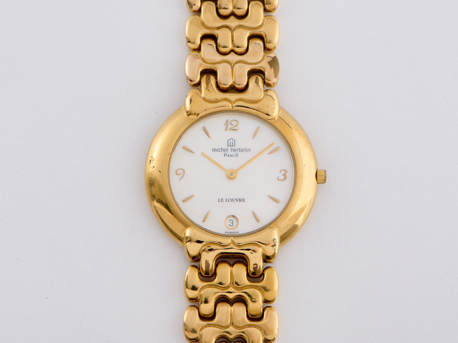 A WRISTWATCH BY MICHEL HERBLIN IN 18CT GOLD ELECTROPLATED METAL, WITH MOTHER OF PEARL SET DIAL