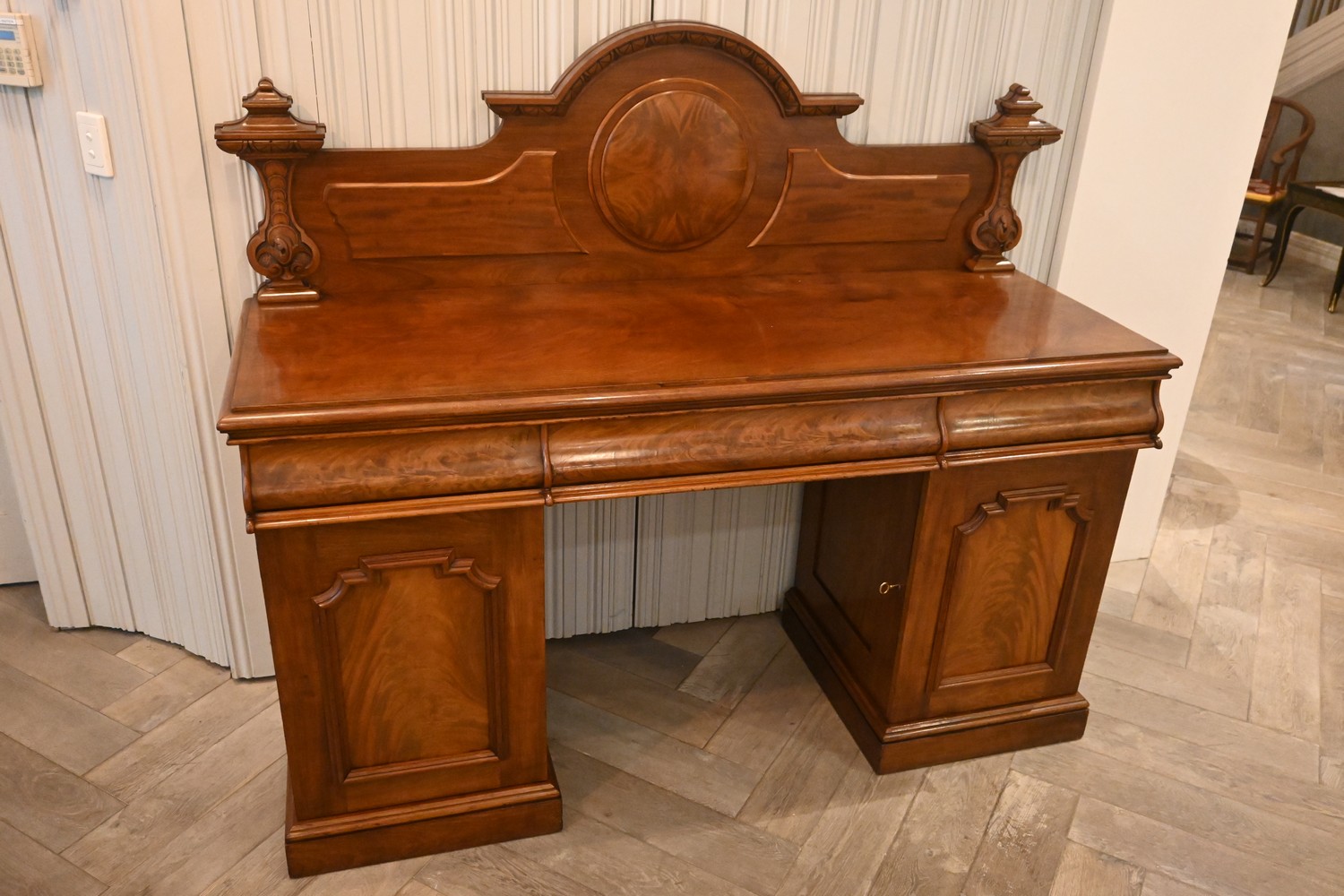 A VICTORIAN MAHOGANY PEDESTAL SIDEBOARD (150H X 173W X 65D CM) (PLEASE NOTE THIS HEAVY ITEM MUST BE REMOVED BY CLIENTS OR CARRIERS AT THE CUSTOMERS EXPENSE. LEONARD JOEL STAFF CANNOT ASSIST CARRYING THIS ITEM)