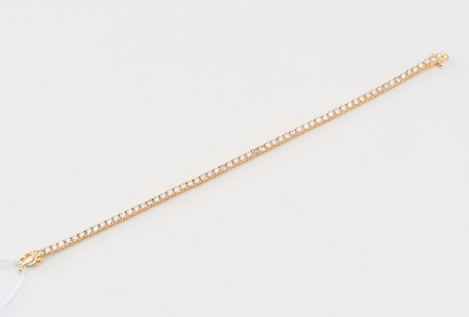 A DIAMOND BRACELET IN 18CT WHITE GOLD, DESIGNED AS A CONTINUOUS LINE OF FORTY FIVE BEZEL-SET BRILLIANT CUT FAINT PINK DIAMONDS, TOGETH.