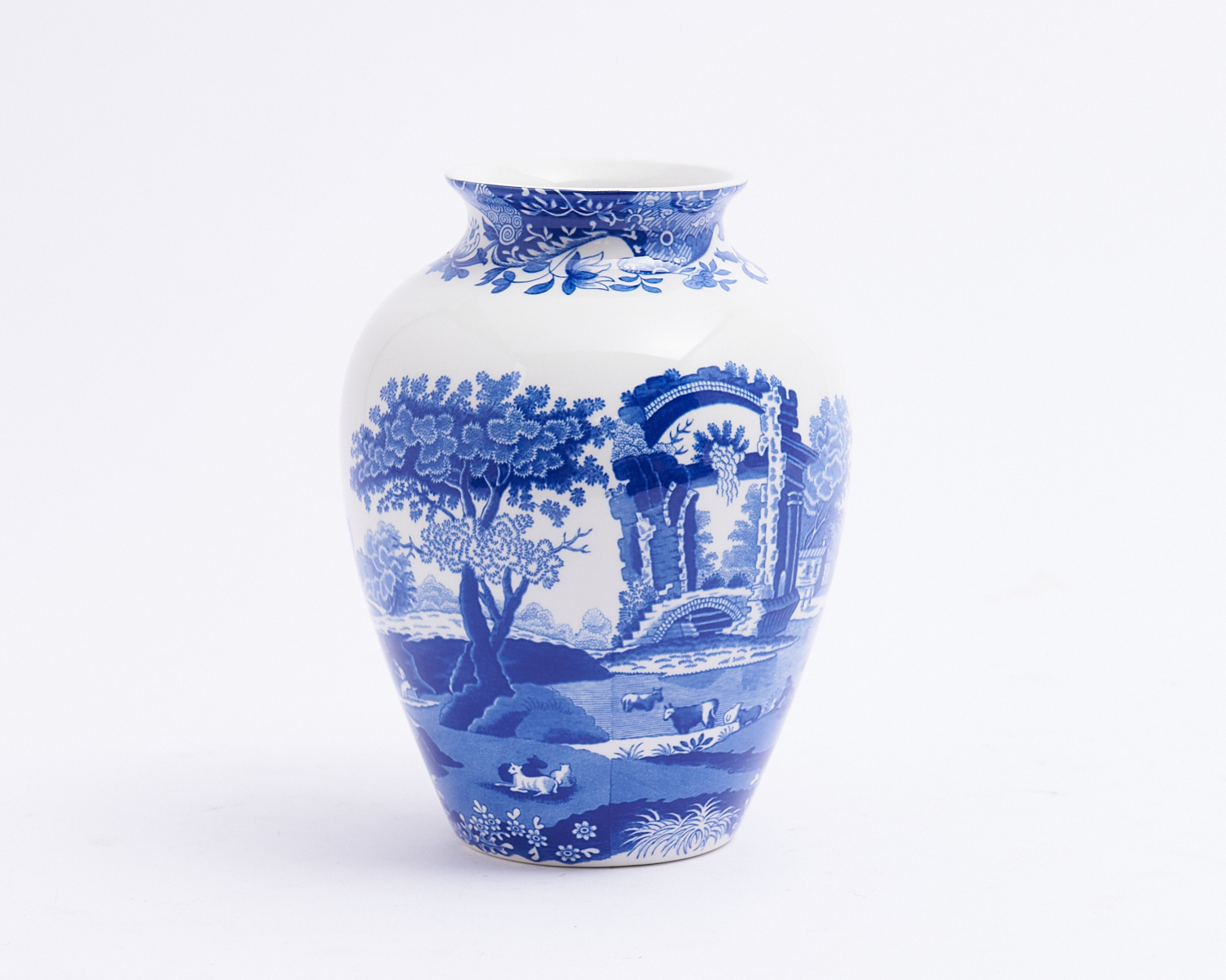 A SPODE ITALIAN PATTERN BLUE AND WHITE VASE H.20.5CM, LEONARD JOEL LOCAL DELIVERY: SMALL