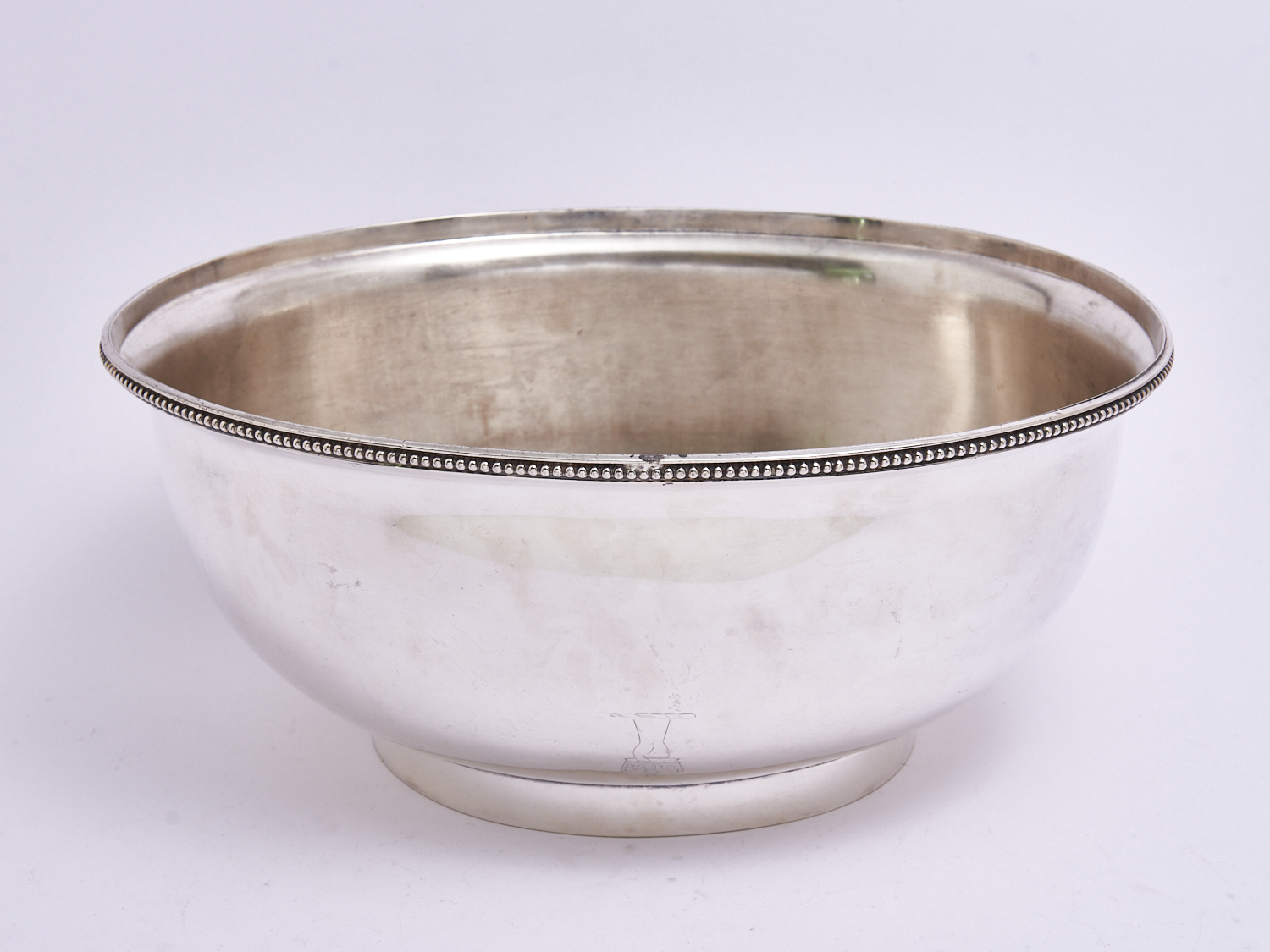 A GEORGIAN STERLING SILVER CIRCULAR TRAY WITH BRIGHT CUT DECORATION, CREST AND BEADED BORDER. HALLMARKED LONDON 1823 APPROX 430 GRA...