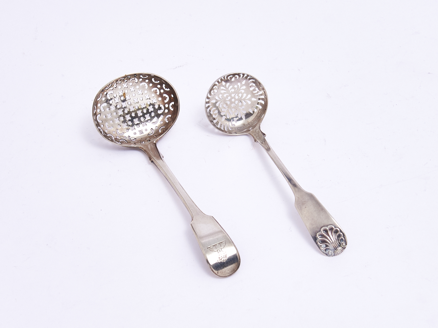TWO STERLING SILVER SIFTING LADLES L.16.5CM, LEONARD JOEL LOCAL DELIVERY: SMALL