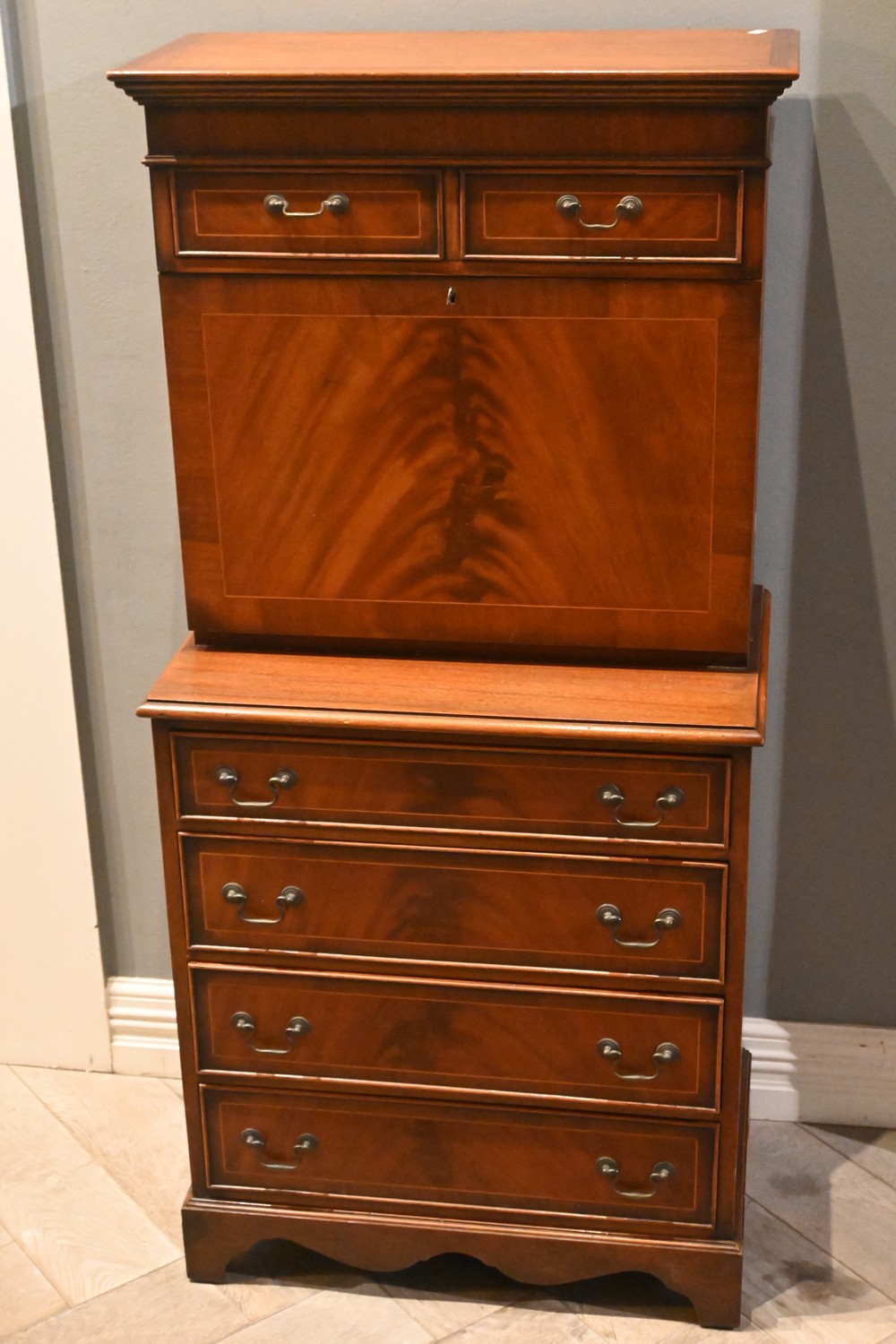 A GEORGE III-STYLE MAHOGANY FALL-FRONT SECRETAIRE (136H X 65W X 39D CM) (LEONARD JOEL DELIVERY SIZE: LARGE)