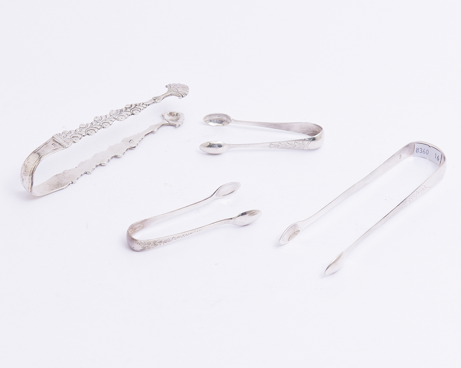 FOUR PAIRS OF STERLING SILVER SUGAR TONGS, LEONARD JOEL LOCAL DELIVERY: SMALL