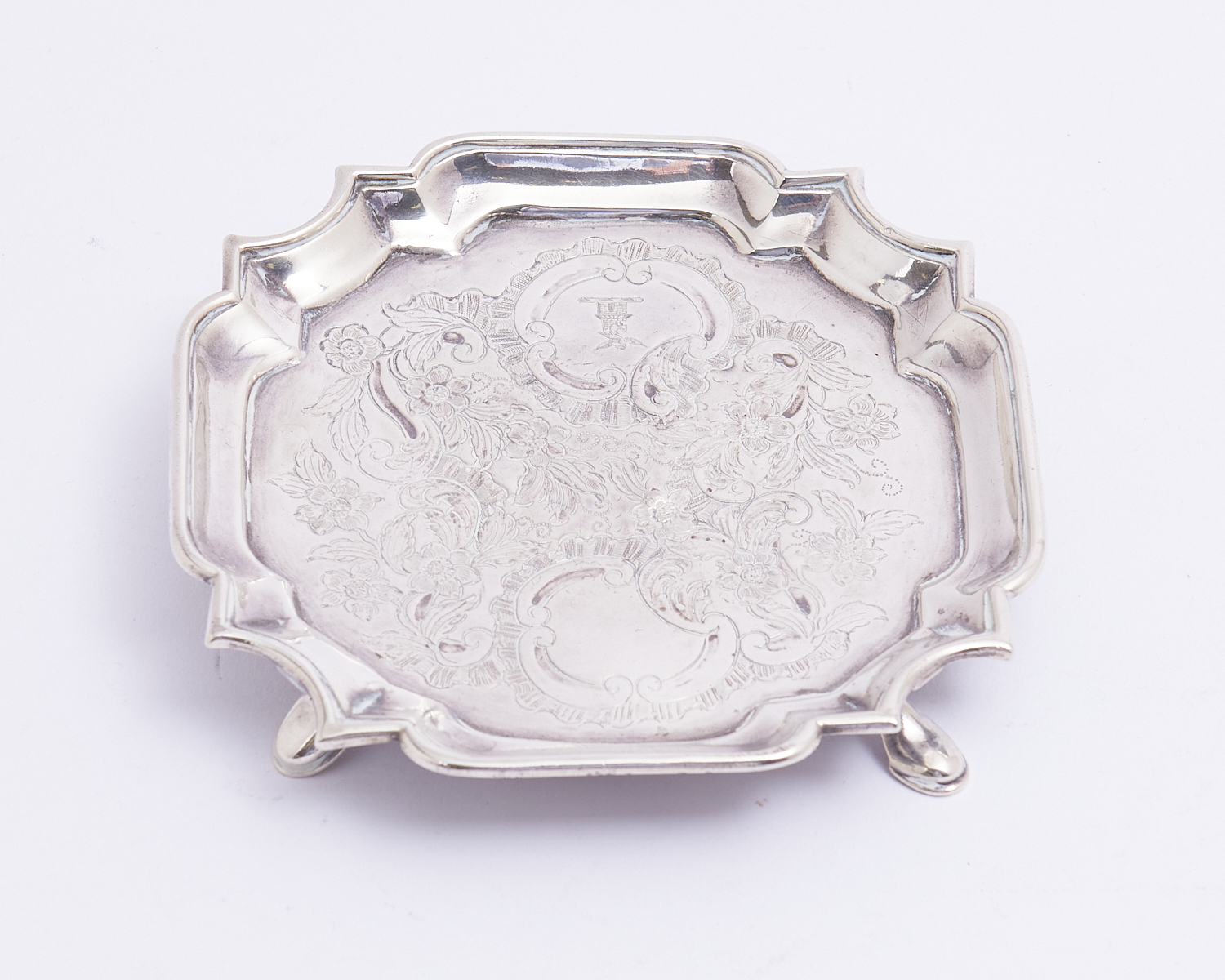 A GEORGIAN STERLING SILVER SALVER HALLMARKED LONDON 1811 APPROX 166 GRAMS DIA.14CM, LEONARD JOEL LOCAL DELIVERY: SMALL