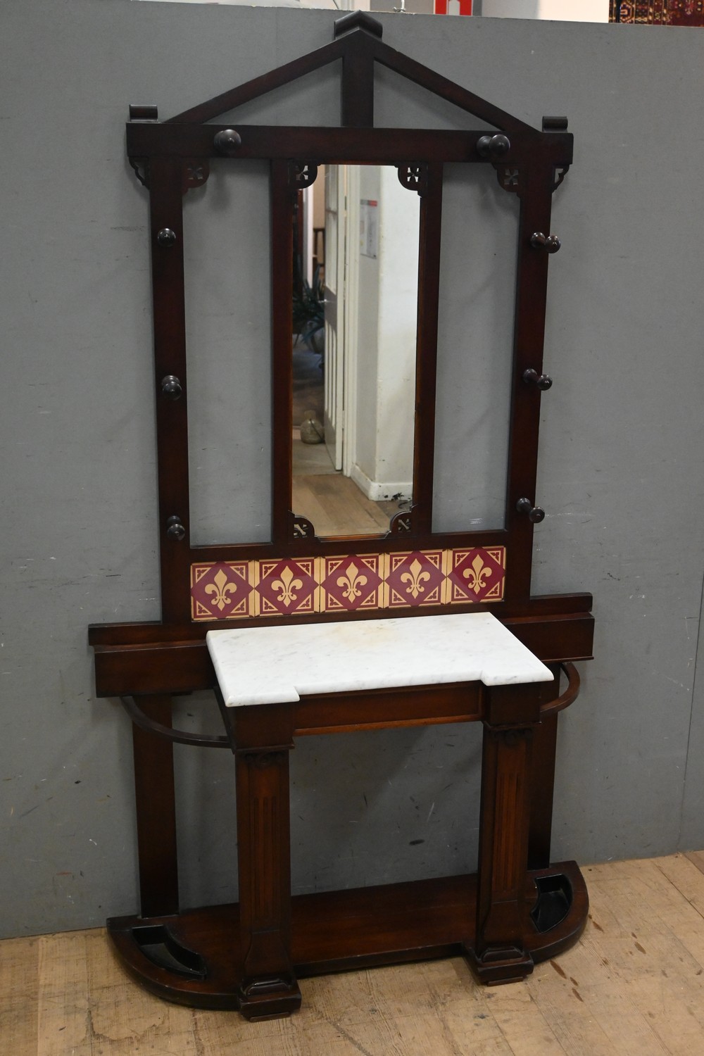 A VICTORIAN MAHOGANY HALL-STAND WITH DRAWER (A/F) (213H X 122W X 42D CM) (LEONARD JOEL DELIVERY SIZE: LARGE)