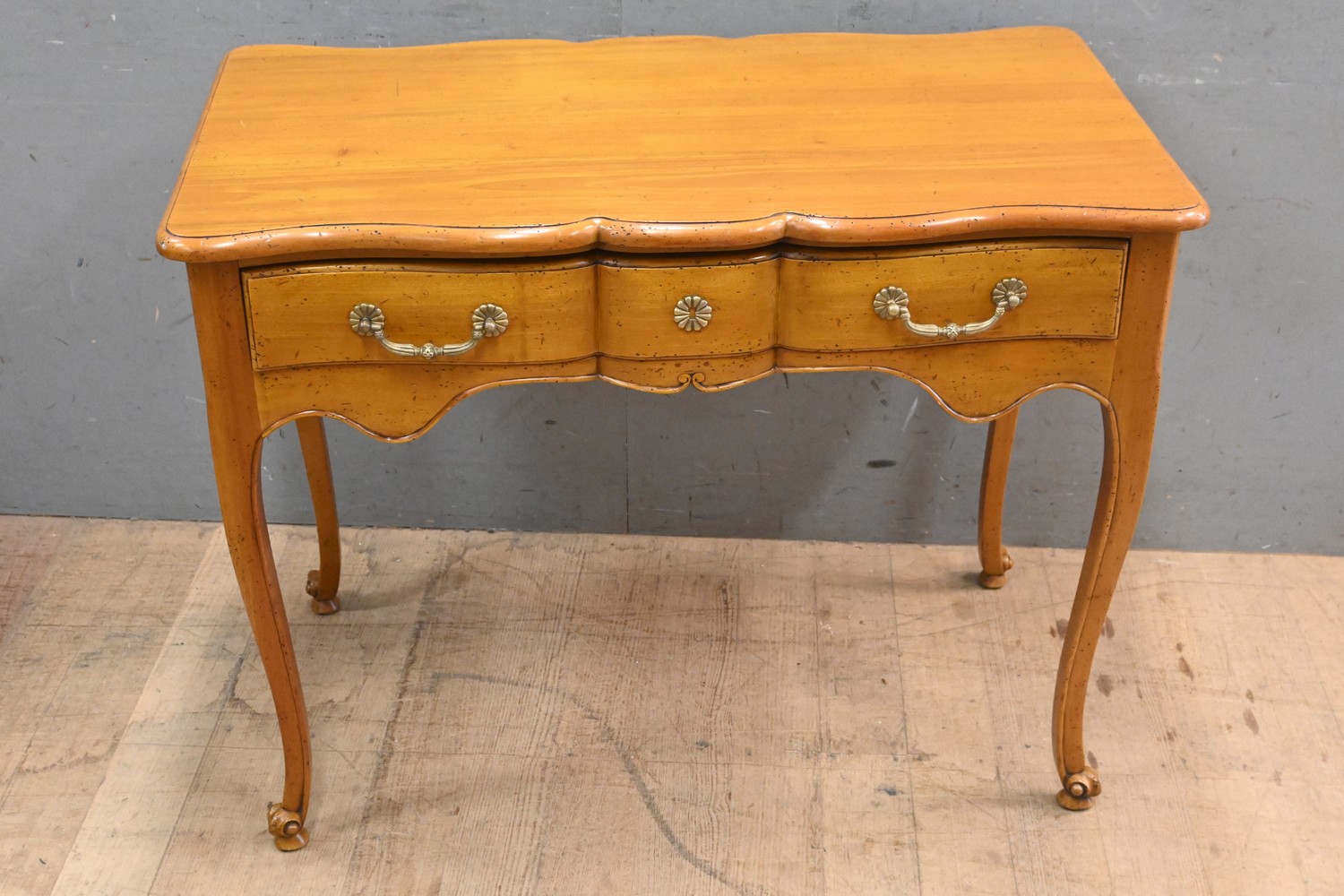A LOUIS XV STYLE CENTRE WRITING TABLE WITH SINGLE DRAWER AND FAUX DRAWER TO REAR (79H X 100W X 55D CM) (LEONARD JOEL DELIVERY SIZE: LARGE)