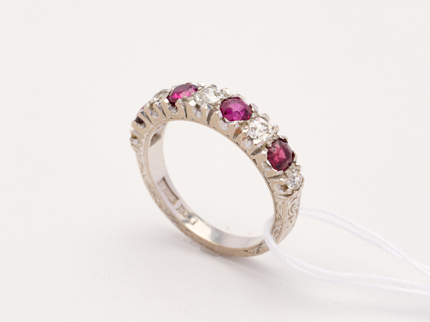 A RUBY AND DIAMOND RING IN 18CT WHITE GOLD, RING SIZE O, 5.5GMS