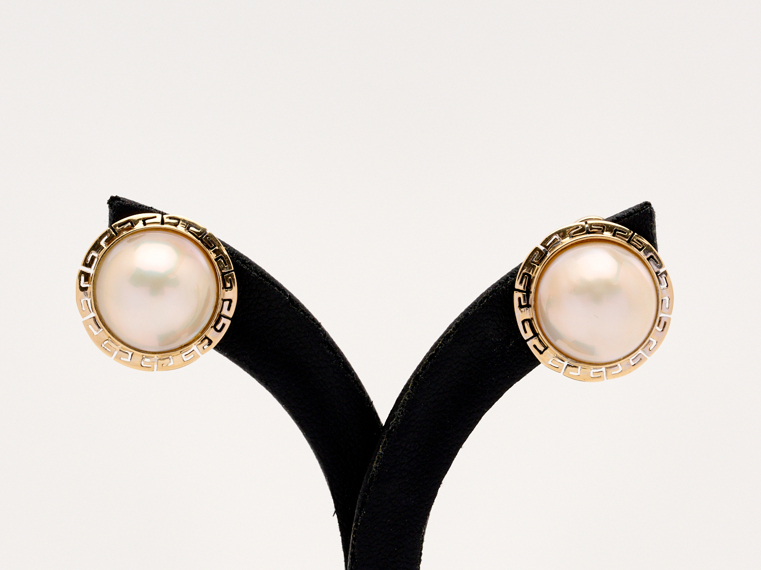 A PAIR OF OF MABE PEARL EARRINGS IN 14CT GOLD, TO POST AND CLIP FITTINGS, DIAMETER APPROXIMATLEY 16.81MM