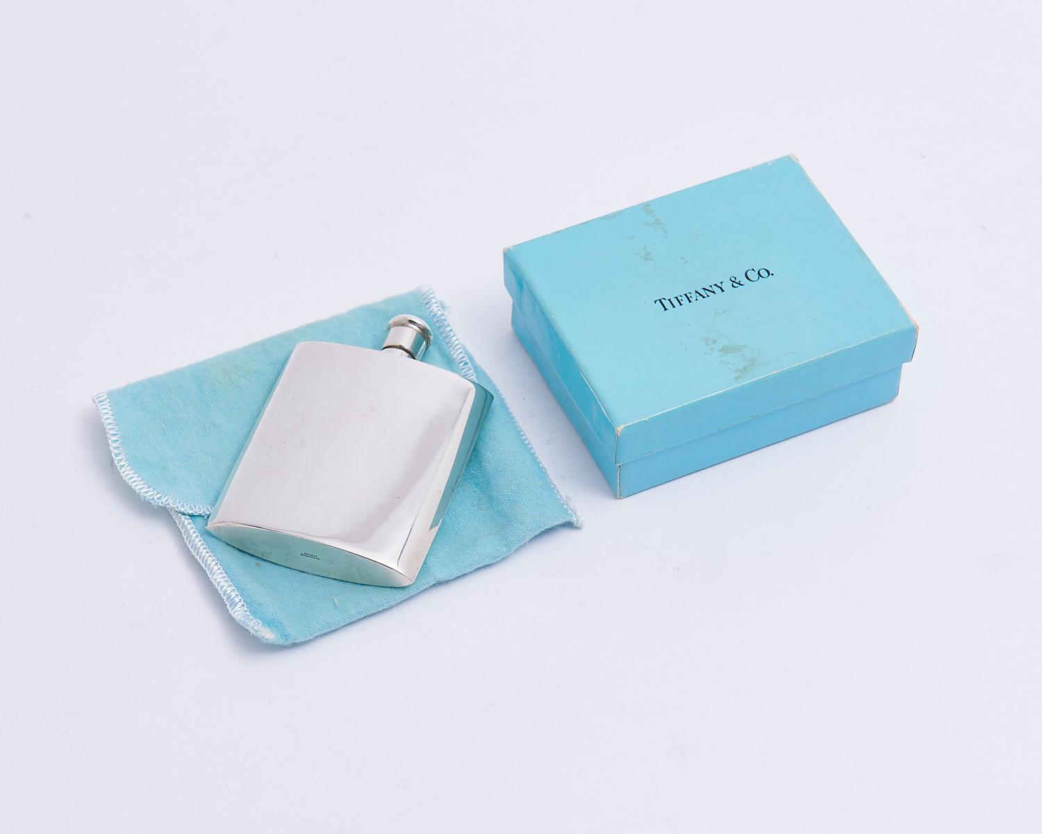 A TIFFANY STERLING SILVER 2OZ FLASK IN BOX H.8.5CM, LEONARD JOEL LOCAL DELIVERY: SMALL