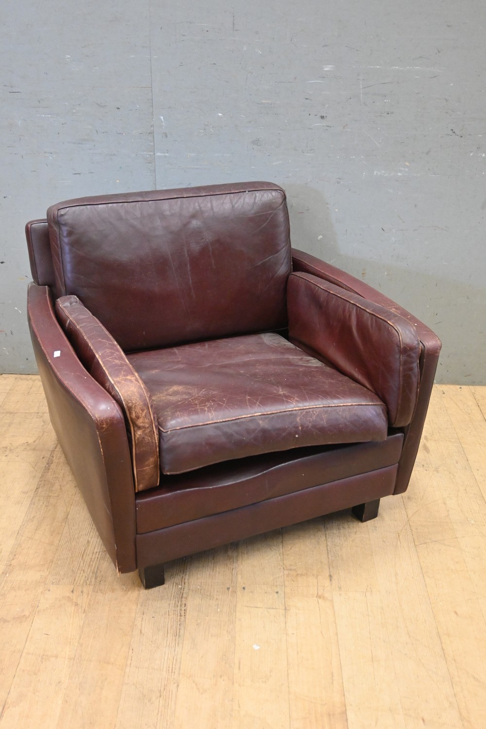 A RETRO DANISH LEATHER CLUB CHAIR (A/F) ( 70H X 85W X 80D CM) (LEONARD JOEL DELIVERY SIZE: X-LARGE)