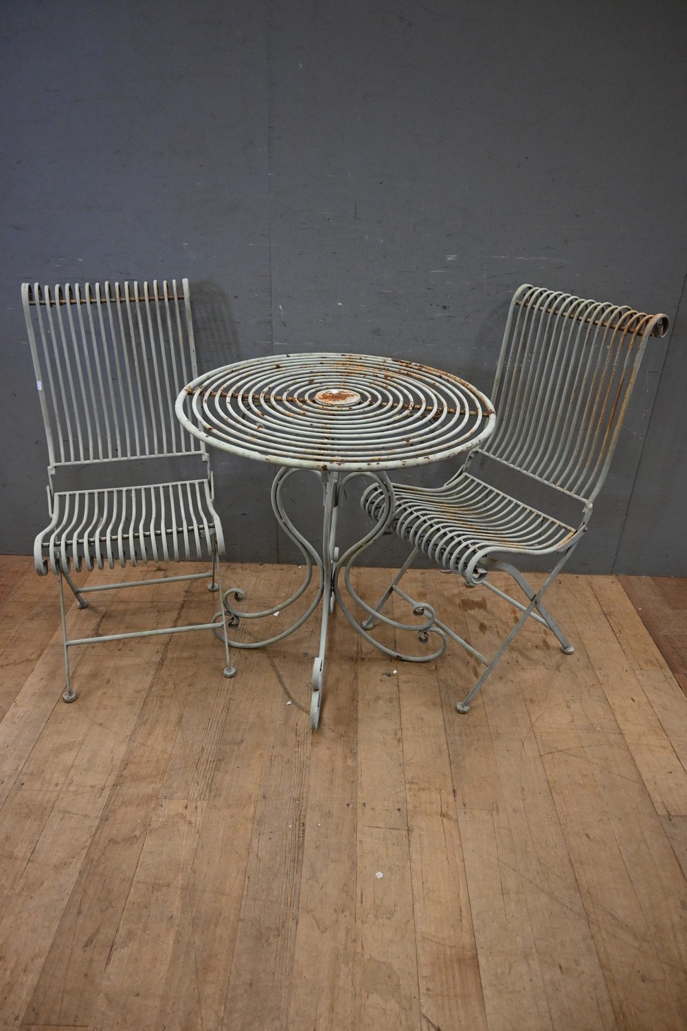 A THREE PIECE FRENCH OUTDOOR SETTING ( 74H X 71 DIAMETER CM) (LEONARD JOEL DELIVERY SIZE: LARGE)